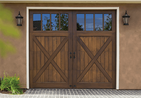 Carriage house garage doors (also known as barn garage doors) are currently one of the most popular styles of garage doors. One reason is that they are available in so many varieties. A carriage house garage door, regardless of the materials it is made from, is built to look like an ‘old-fashioned’ swing-out pair of doors in its most basic design; however modern carriage house doors are actually built to open up over your head, just as a normal garage door does.